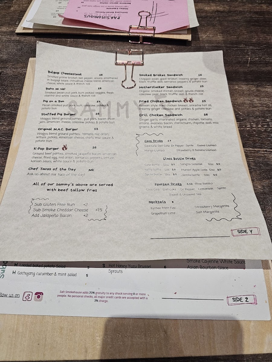 Welcome to Salt Smokehouse, a culinary gem located at 1300 Meridian St N in Huntsville, AL. This vibrant eatery combines an inviting atmosphere with a menu brimming with bold flavors that are sure to delight. Judging by customer reviews, the brisket stands out as a must-try item, celebrated for its tenderness and rich taste. Other favorites include the BBQ nachos and duck wings, which receive high praise for their unique and delicious flavors.